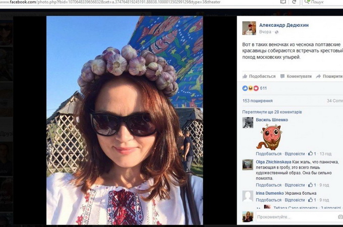 Нагадаємо, священик УПЦ КП опублікував на своїй сторінці Facebook фото полтавської дівчини у вінку з часнику і зробив підпис: «Ось в таких віночках з часнику полтавські красуні збираються зустрічати хресний хід московських вампірів».