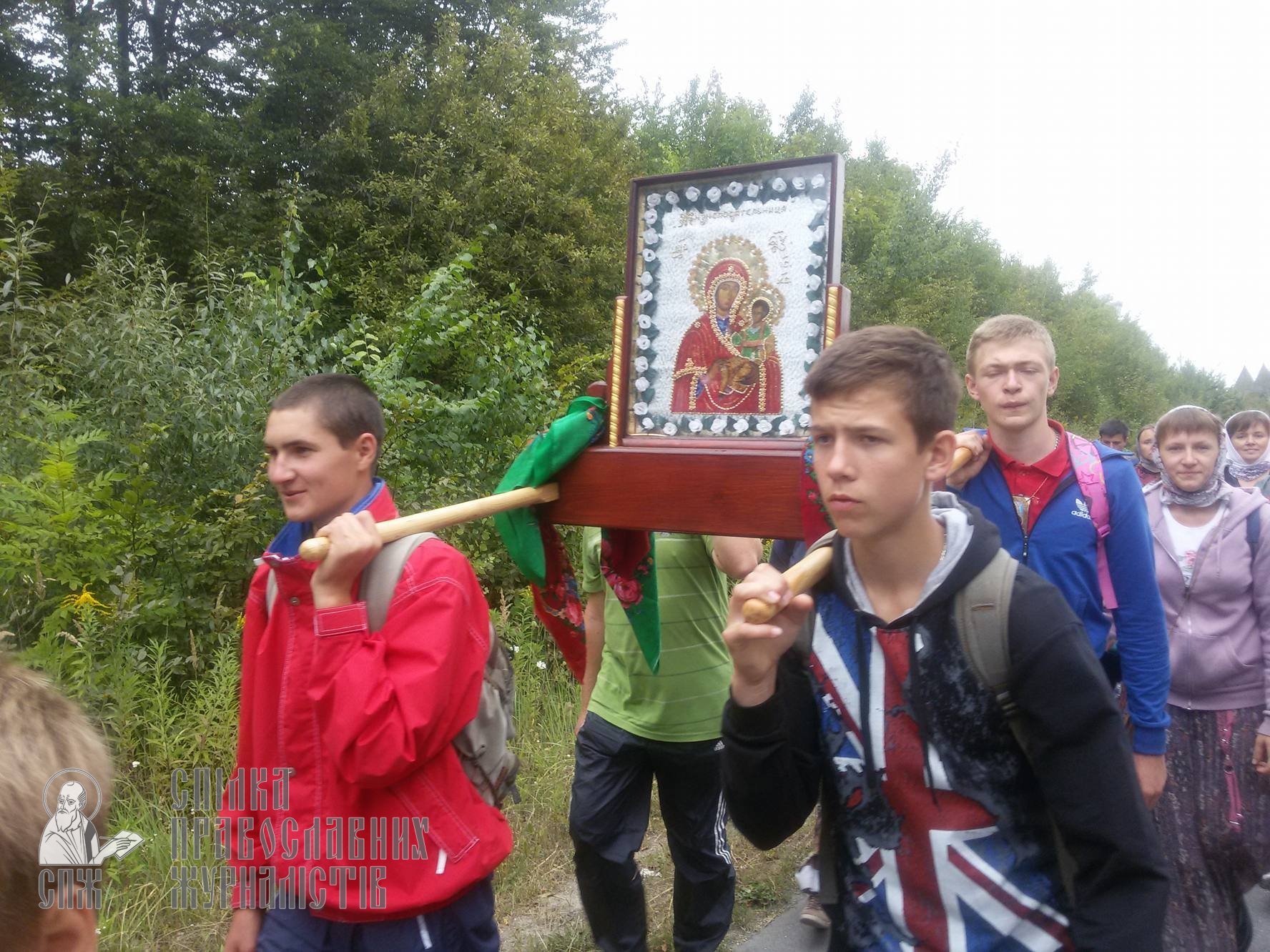 Вирушили у дорогу ще у неділю, 14 серпня, разом із своїм настоятелем та духівником протоієреєм Віктором Земляним. Хрестоходці взяли із собою Чудотворний образ Божої Матері «Життєподательниці», котру пронесли, чергуючись, весь шлях на своїх плечах. На ночівлю зупинялись у селах та містах Тернопільської області, у тому числі в селі Іловиця, де народився та помер Преподобний Амфілохій Почаївський. Кільком хрестоходцям навіть вдалося заночувати у будиночку Преподобного.