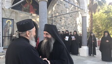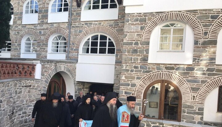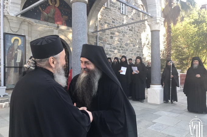 Предстоятель УПЦ зустрівся з новообраним ігуменом Пантелеймонового монастиря на Афоні