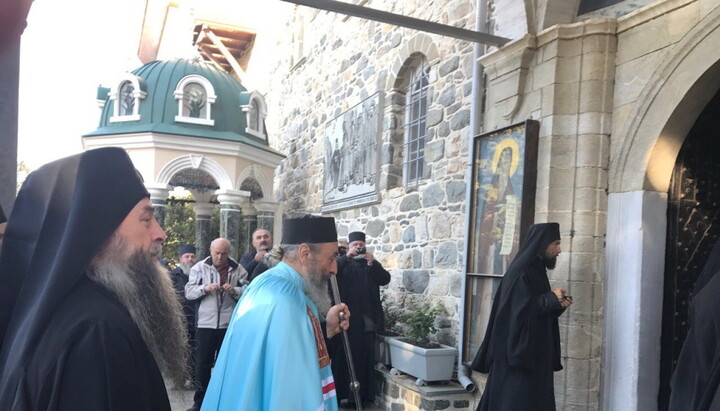 Після урочистої зустрічі Блаженніший владика відвідав головний собор монастиря, де вклонився мощам святого великомученика Пантелеймона.