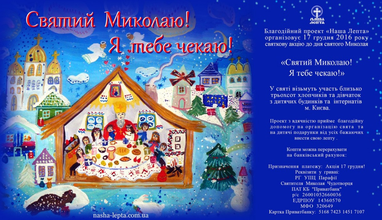 Мета акції – подарувати дітям свято, свято уваги, турботи й тепла. Кульмінацією заходу стане роздача подарунків від святого Миколая.