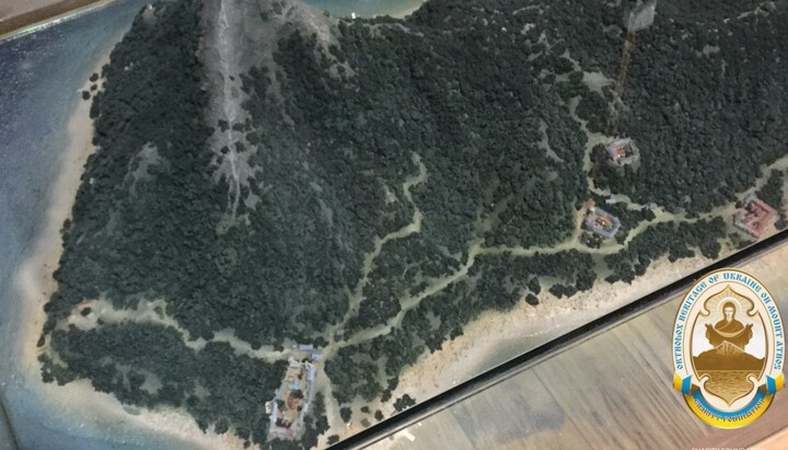 «При створенні макета ми відійшли від його географічного масштабування, приділяючи більше уваги передачі особливостей рельєфу місцевості, ландшафту, розташуванню обителей на території півострова. Адже монастирі на макеті розставлені в тому архітектурному ансамблі, в якому розташовуються на Афонській землі. Разом з тим, їхній розмір становить не більше двох сантиметрів – це маленькі «будиночки», що символізують монастирі, скити та келії. Також схематично зображені дороги на Святій Горі», – розповів засновник Благодійного фонду «Православна спадщина України на Святій Горі Афон» Дмитро Ворона.