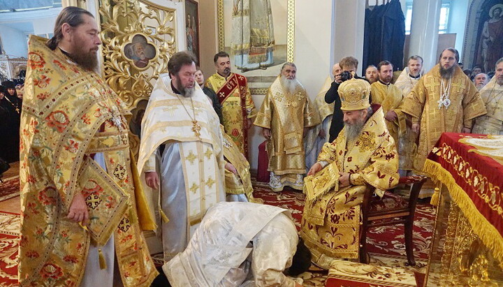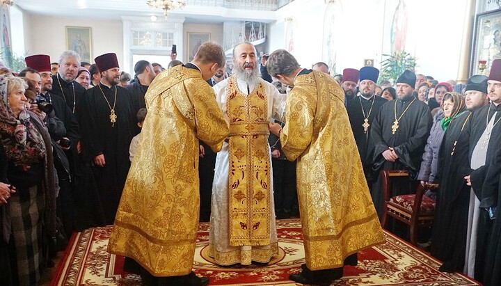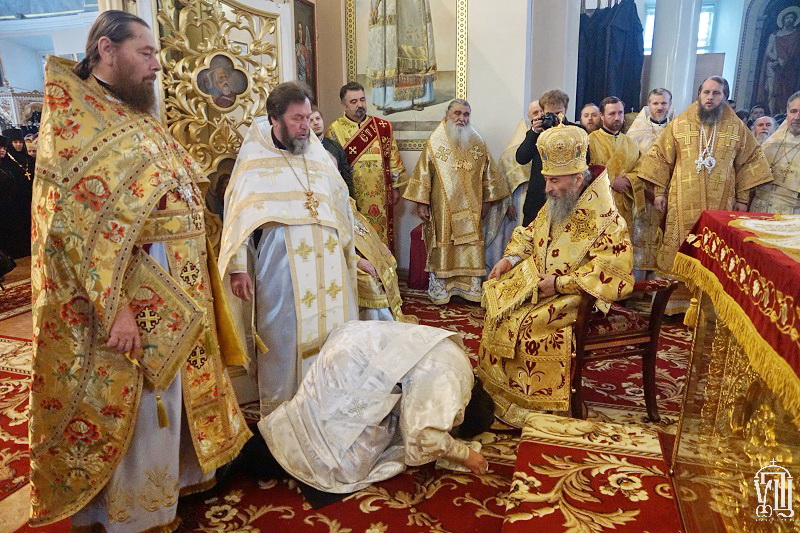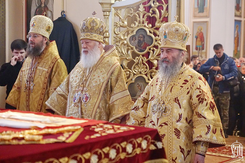 Перед початком богослужіння біля стін собору Предстоятеля зустрічали представники влади міста та численні віруючі. За богослужінням молилися духовенство з різних єпархій Української Православної Церкви і численна херсонська паства.