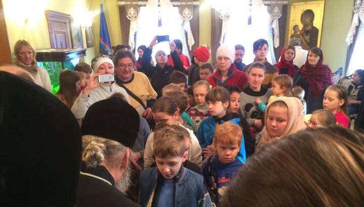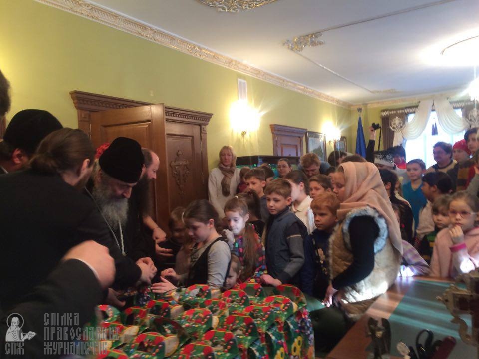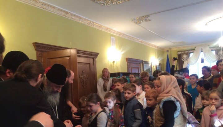Більше 70 дітей-переселенців зі Сходу України побували сьогодні у резиденції Митрополита Київського і всієї України Онуфрія в Києво-Печерській Лаврі. Предстоятель УПЦ звернувся до них з теплими словами привітання та роздав подарунки.