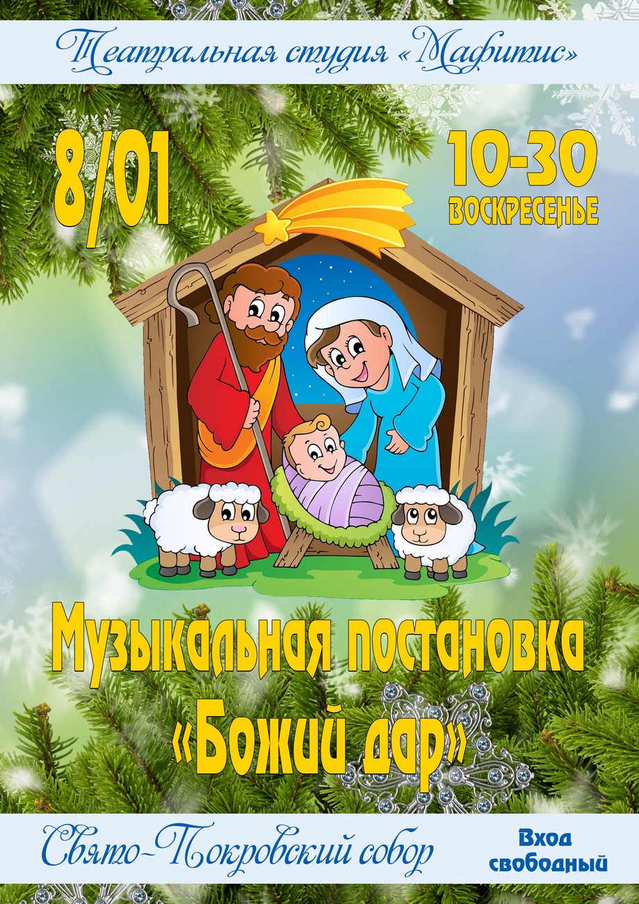 Цього ж дня у Свято-Покровському архієрейському соборі в Запоріжжі дітям та дорослим покажуть музичну виставу «Божий дар», яку підготувала місцева театральна студія «Мафітіс». Початок о 10.30, вхід вільний.