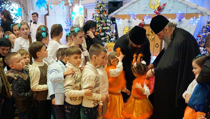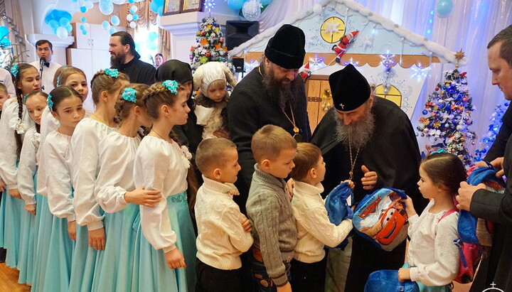 Діти радо вітали Предстоятеля. Для високого гостя вихованці дитячих будинків заспівали різдвяні колядки та піснеспіви, продекламували вірші.