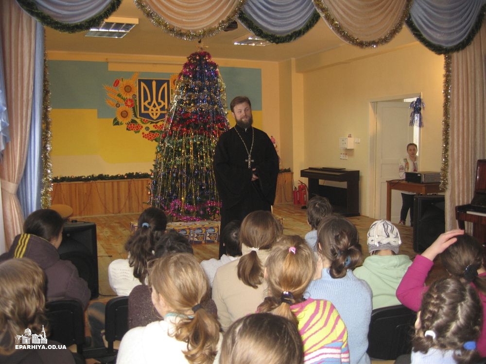 Наступного дня настоятель одеського храму на честь преподобного Сергія Радонезького протоієрей Сергій Кударенко відвідав Одеський дитячий будинок-інтернат. Священик привітав персонал і 130 вихованців закладу з Різдвом Христовим та роздав подарунки дітям. Зусиллями недільної школи Свято-Сергіївської парафії для сиріт також була організована святкова вистава.