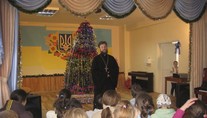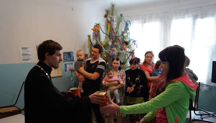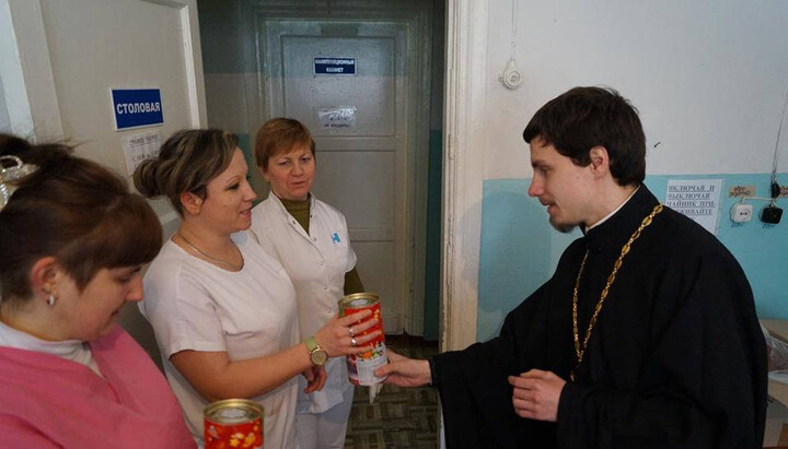В Донецькій області, у Волновасі, настоятель храму на честь ікони Божої Матері Сергій Ржевський привітав маленьких пацієнтів, їхніх батьків та медичний персонал дитячого відділення Волноваської районної лікарні з Різдвом Христовим та вручив солодкі подарунки.