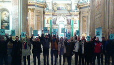 Противники передачі Ісаакіївського собору Церкві влаштували флешмоб на Богослужінні