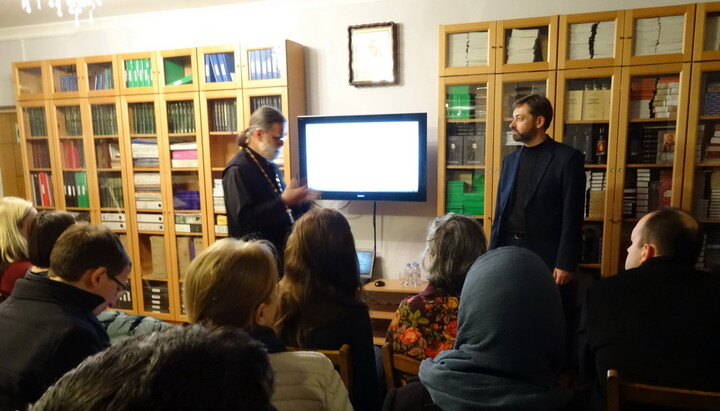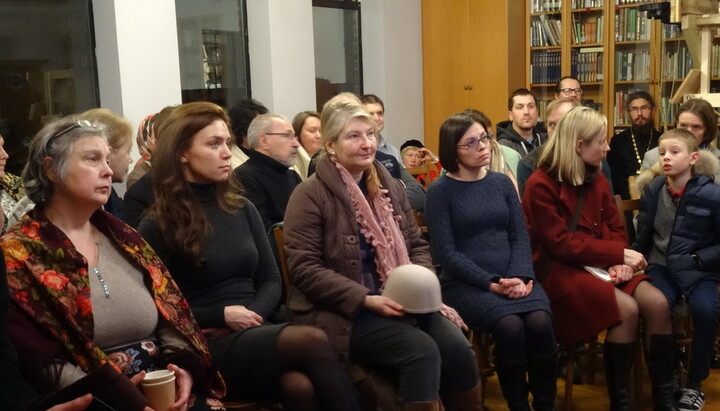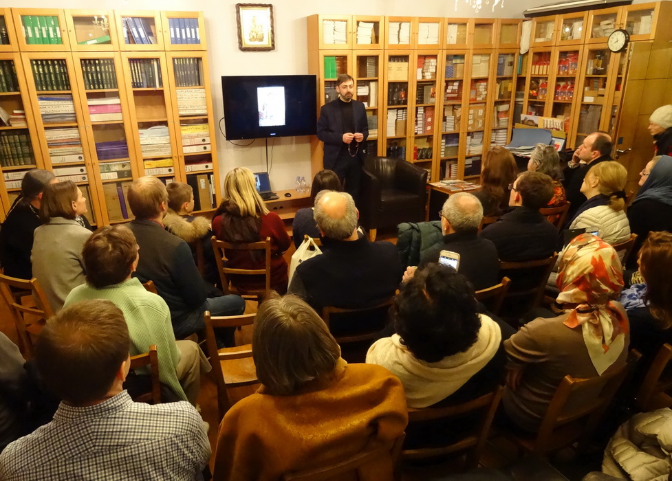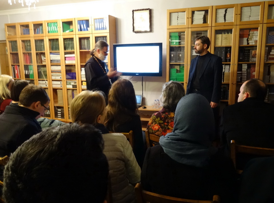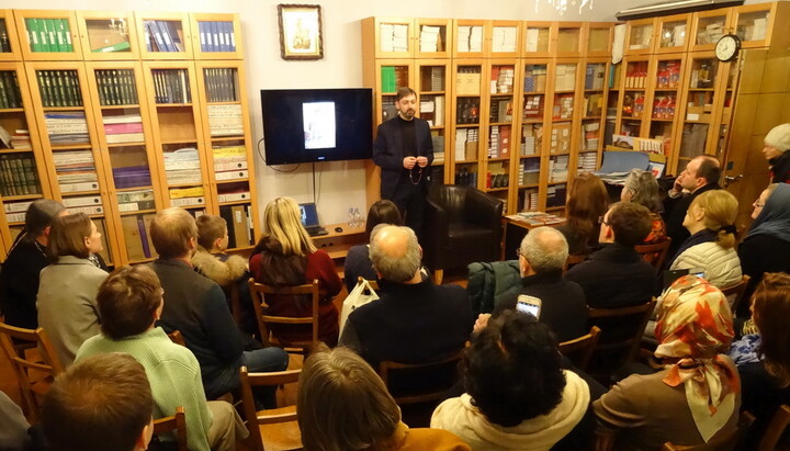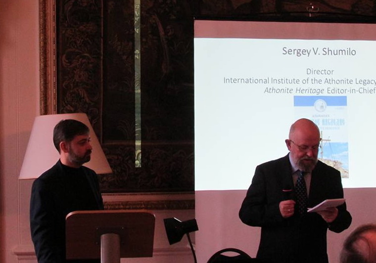 Під час вечора перед присутніми виступив директор МІАСУ Сергій Шумило, який розповів про тисячолітні зв'язки Київської Русі та Афону, провів презентацію видавничих проектів УПЦ і МІАСУ. На захід прийшло понад 50 осіб, переповнений зал бібліотеки Сурозької єпархії не міг вмістити всіх бажаючих, тож деяким учасникам довелося кілька годин стояти.