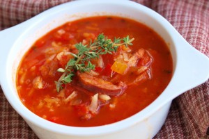 Рис – 160 г, помідори – 160 г, морква – 100 г, цибуля ріпчаста – 100 г, корінь петрушки – 26 г, вода – 1,8 л, спеції, зелень – 100 г