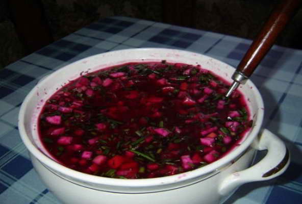 Цей суп готується подібно до холодного борщу. Буряк вариться разом з листям, тільки бадилля потрібно дрібно нарізати й укласти в каструлю за 10 хвилин до готовності буряків.
