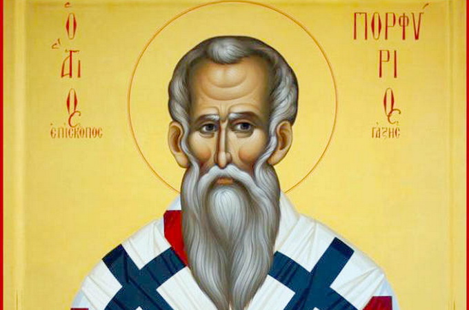 Святитель Порфирій, архієпископ Газький, народився близько 346 року у Фессалоніках, в Македонії. Батьки його були людьми заможними, і це дозволило святителю Порфірію отримати гарну освіту.