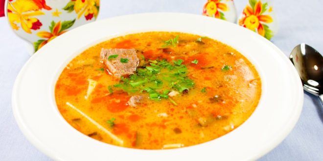 Перед подачею покладіть в тарілки свіжу петрушку і сухарики з чорного хліба.