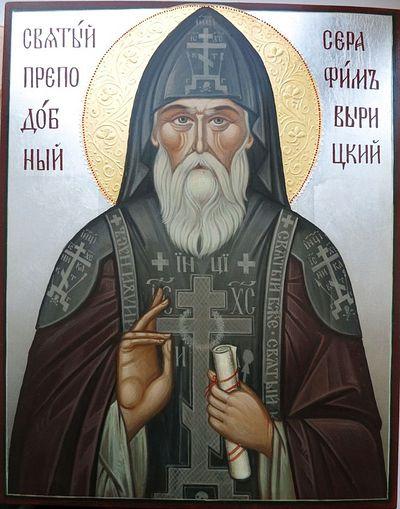 Ікона преподобного Серафима Вирицького, привезена з Санкт-Петербурга, була написана восени 2016 року. Для дошки цієї ікони була використана сосна, що виросла на могилі батьків преподобного Серафима – Миколи Івановича та Хіоніі Алімпіївни, що біля Микольського храму у селі Спас-Ухра Рибінського району Ярославської області.