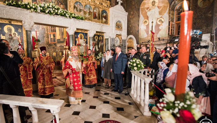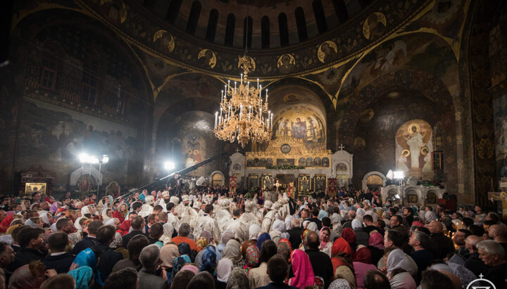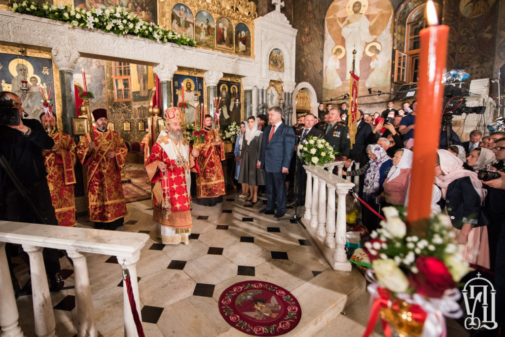 За богослужінням молилися численні віруючі Української Православної Церкви. Пасхальне богослужіння відвідав Президент України Петро Порошенко.