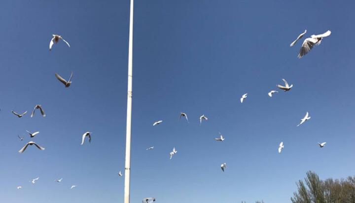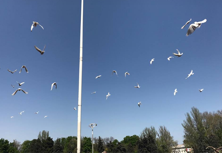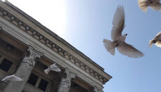 Біля Будинку профспілок в Одесі випустили білих голубів та чорні кульки (ФОТО)