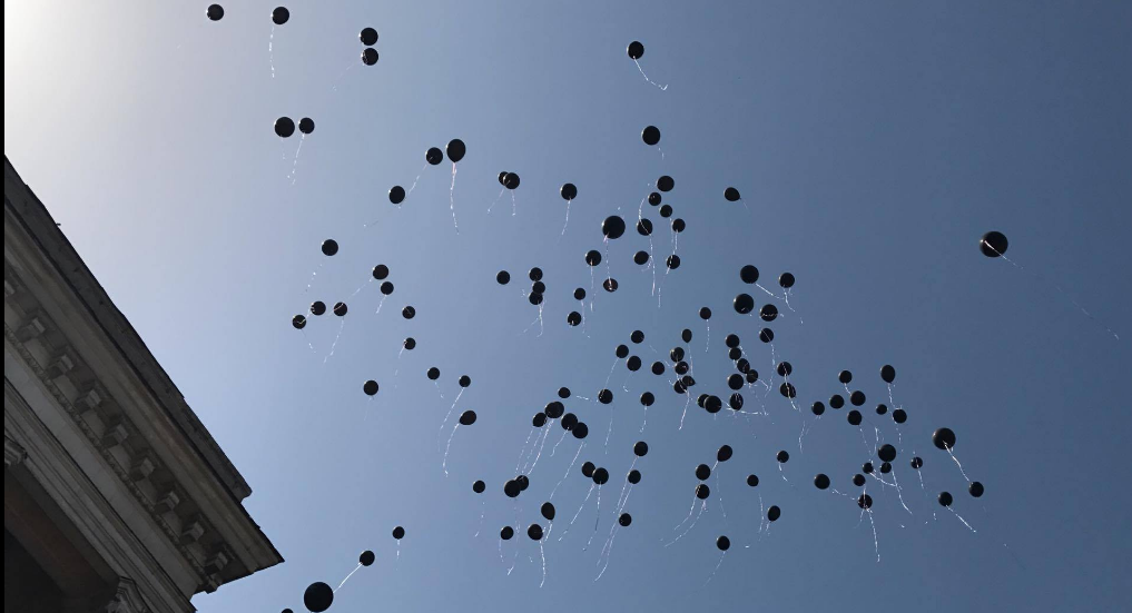 Під скандування: «Не забудемо! Не пробачимо!» вони випустили близько півсотні чорних повітряних кульок, а також білих голубів.