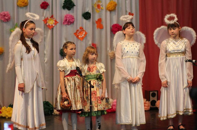 Він побажав продовжувати та вдосконалюватися на творчому шляху і у своєму духовному розвитку, та подякував художнім керівникам і батькам за активну участь у житті Церкви. Отець Сергій привітав усіх із святом Пасхи зі словами – «Христос воскрес», на що діти відповіли – «Воістину Воскрес!».