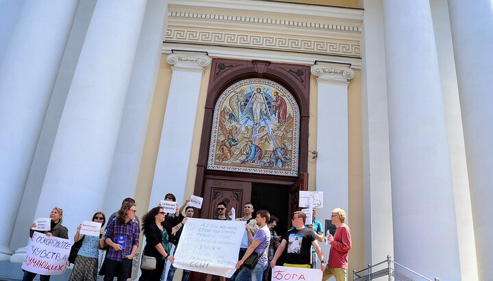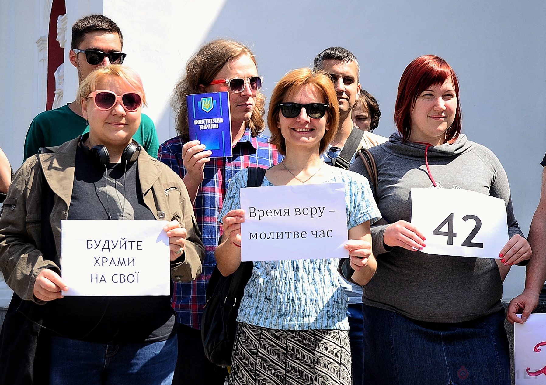 Яким чином пов'язані агностицизм, атеїзм та права «інших конфесій», організатори акції не пояснили. При цьому один з учасників тримав плакат із написом: «Бога немає, але ви тримайтеся».
