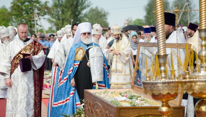 Після заамвонної молитви архіпастирі та священнослужителі звершили славлення перед мощами святого праведного Іоанна Кормянського.