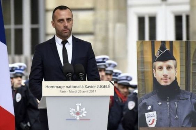 Ксавьє Жюжле вбили під час стрілянини на Єлисейських полях увечері 20 квітня, коли озброєний автоматом Калашникова чоловік розстріляв поліцейський автомобіль.