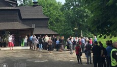 Представники УГКЦ відслужили літургію. Станом на 9:00 уніатів біля храму зібралося приблизно втричі більше, ніж парафіян УПЦ.
