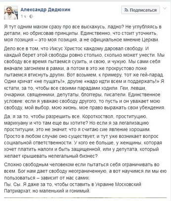 При цьому він додав, що це його «особиста позиція, а не офіційна думка Церкви».