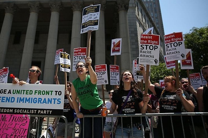 Мітинги проти ісламофобії були численнішими. Наприклад, в Нью-Йорку подібна акція перетворилася в хід у районі Манхеттен за участю сотень демонстрантів. Учасники також несли плакати з написами: «Ласкаво просимо, мігранти», «Всі ми мусульмани, всі ми мігранти» та інші. Один з учасників ходи в результаті був затриманий поліцією.