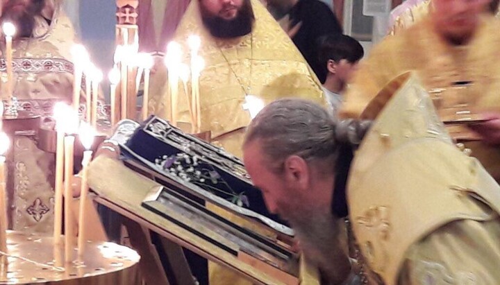 Його Блаженству співслужили архієреї Руської Православної Церкви за кордоном, першоієрарх РПЦЗ митрополит Східно-Американський і Нью-Йоркський Іларіон, архієпископ Берлінський і Німецький Марк, ієрархи РПЦЗ, РПЦ представляв єпископ Єгор'євський Тихон.