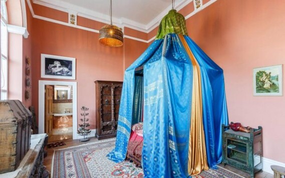 Як повідомляється, в головній спальні є двоповерхова стеля, два вітражних вікна, окремий балкон та ванна кімната з мідною ванною і подвійними раковинами, виконаними із скам'янілої деревини.