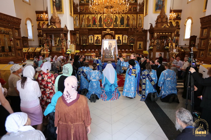 У присутності численних вірян та святогірського духовенства відбувся молебень перед шанованою іконою Матері Божої, який очолив намісник митрополит Арсеній.