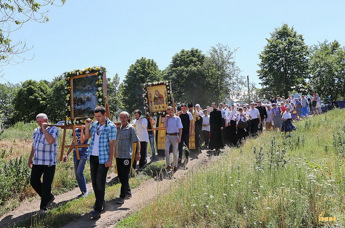 Об 11:00 усі паломники Святогірської Лаври, які бажали взяти участь у присвячених престольному святу урочистостях, мали можливість лаврськими машинами від монастирської площі дістатися до села Нікольське, до храму Володимирської ікони Пресвятої Богородиці, звідки розпочався урочистий хресний хід.
