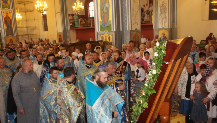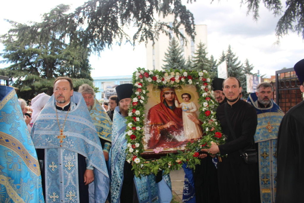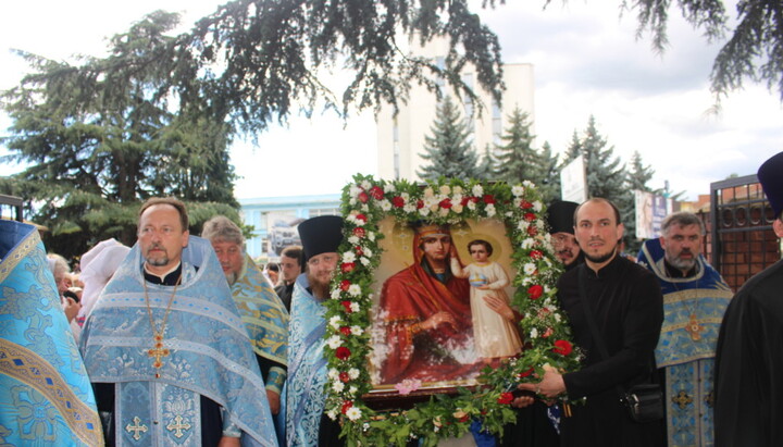 Віряни разом із духовенством молитовно пройшли Хресним ходом відстань у 500 метрів, несучи ікону до Свято-Хрестовозвиженського кафедрального собору Ужгорода. Занісши ікону до центру храму, архієрей зі священнослужителями та народом звершили акафіст та піднесли молитви до Пресвятої Богородиці.