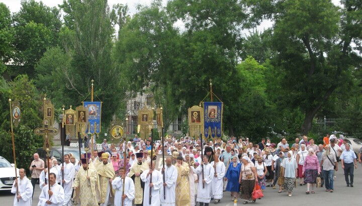 Чудотворна ікона під передзвін та спів тропаря хресним ходом була принесена до кафедрального собору Херсона, після чого було звершено Божественну літургію та молебень.