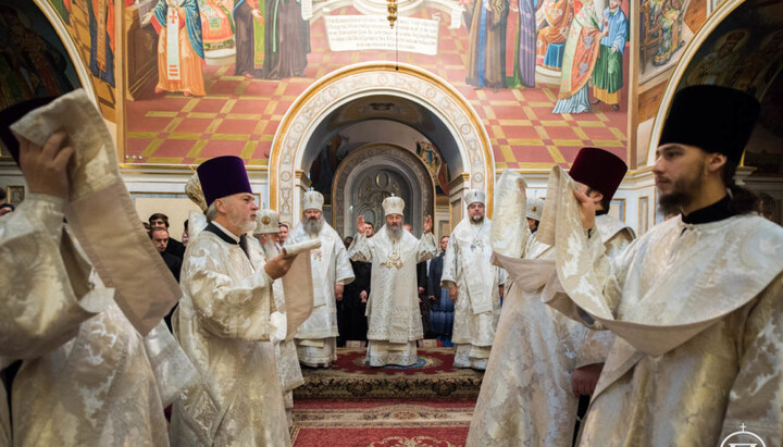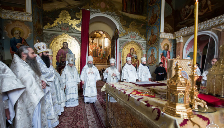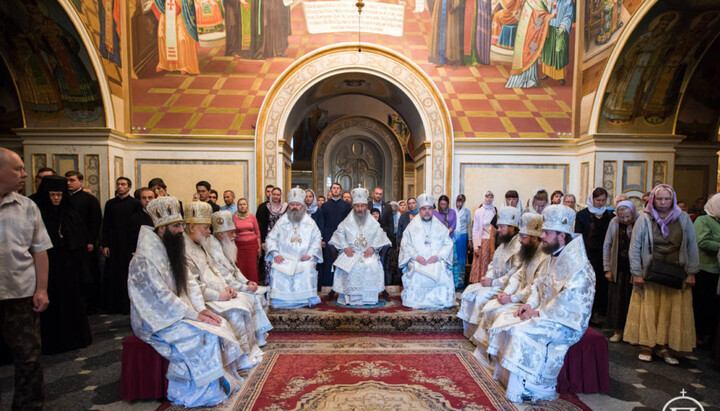 За Літургією були піднесені сугубі молитви про мир в Україні та про упокій душі спочилого Предстоятеля Української Православної Церкви.