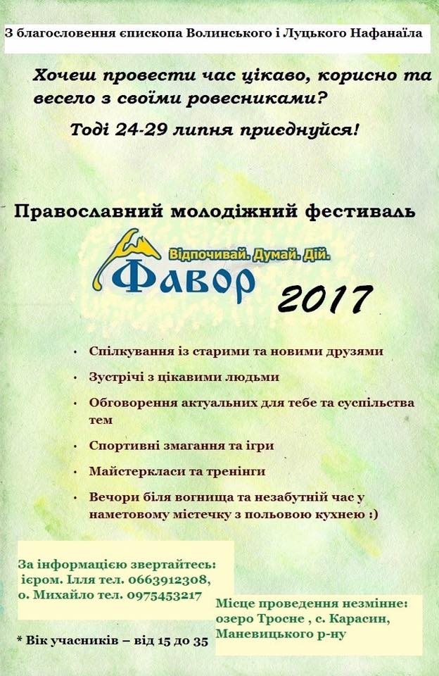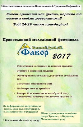 У Волинській єпархії УПЦ пройде православний молодіжний фестиваль «Фавор»