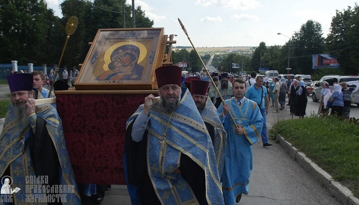 9 липня у Кам'янці-Подільському понад 10 000 прихожан УПЦ зустрічали чудотворний образ Божої Матері «Десятинна». Як повідомляє кореспондент СПЖ, на зустрічі молилися також 60 священнослужителів єпархії на чолі з митрополитом Кам'янець-Подільським і Городоцьким Феодором.