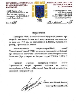 Контрольно-ревізійній комісії УАПЦ патріархія доручила «встановити достовірність публікації про колишнього керуючого Тернопільською єпархією архієпископа Мстислава (Гука) на інтернет-ресурсі ТСН.UA».
