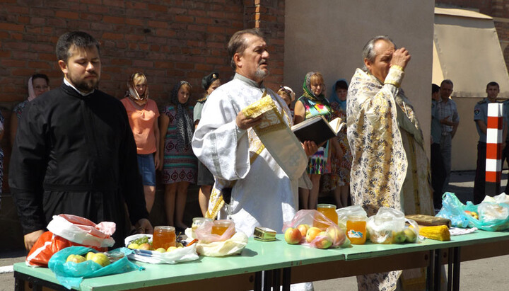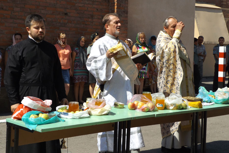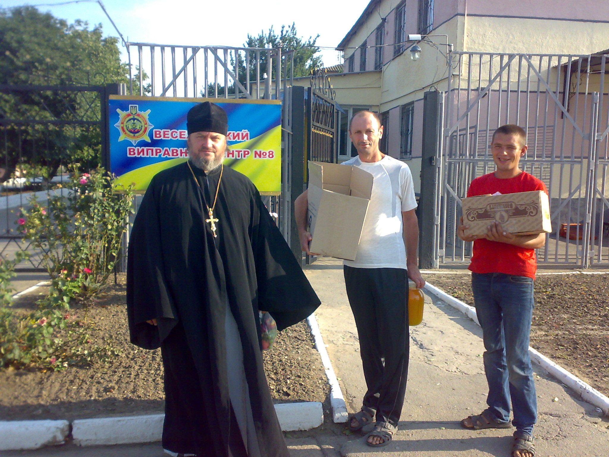 У цей же день настоятель Троїцького храму протоієрей Віктор Івлєв відвідав Микитинську виправну колонію №87, де звершив молебень та освятив для засуджених фрукти і мед. Священик передав від прихожан свого храму не тільки продуктову допомогу для ув’язнених, а й одяг та взуття, та привітав усіх зі святом.