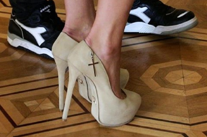 Громадський рух «Чесно» на своїй сторінці у Facebook опублікував знімок з кулуарів Верховної Ради: жінка у взутті, «прикрашеному» християнською символікою.