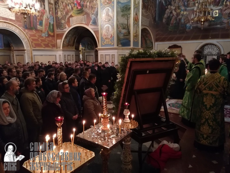 Очолив молитву Предстоятель УПЦ Митрополит Київський і всієї України Онуфрій. Співслужили Блаженнішому сонм архієреїв, представники духовних навчальних закладів України, викладачі та студенти Київських духовних шкіл у священному сані.