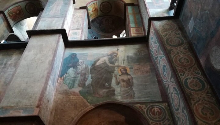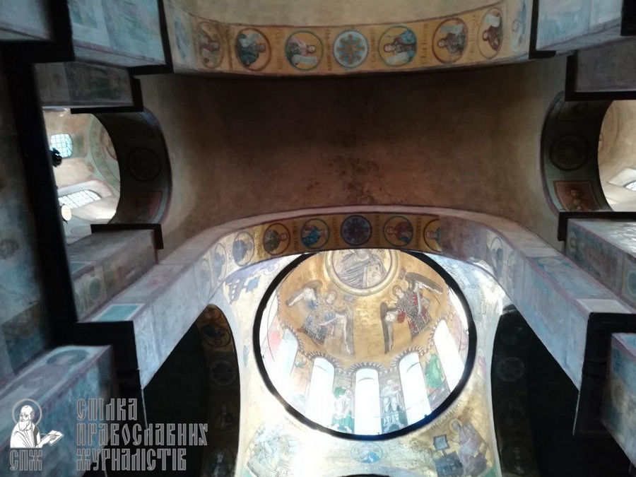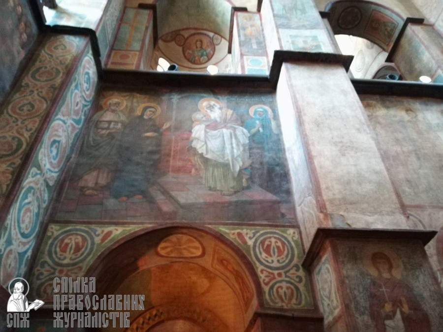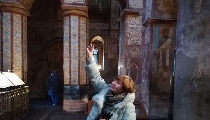 «Собор, закладений ще в 1011 році князем Володимиром, який хрестив Русь, перш за все славний своїми мозаїками та фресками XIX століття, – розповіла Тамара Миколаївна. – А в 1953-1956 роках реставратори керувалися атеїстичною ідеологією: з церковного живопису мають цінність лише стародавні фрески та мозаїки, тому більш пізній живопис зафарбували».