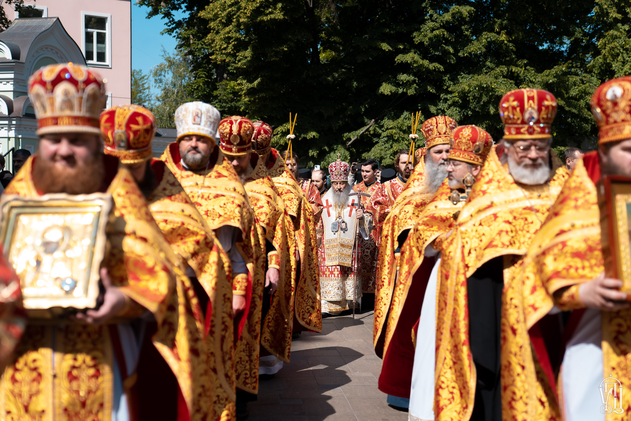 Разом із Предстоятелем служили управсправами УПЦ митрополит Бориспільський і Броварський Антоній, митрополит Васильківський Іоасаф, архієпископ Вишневський Спиридон, єпископ Ірпінський Лавр, єпископ Бородянський Марк, духовенство обителі та гості в священному сані.