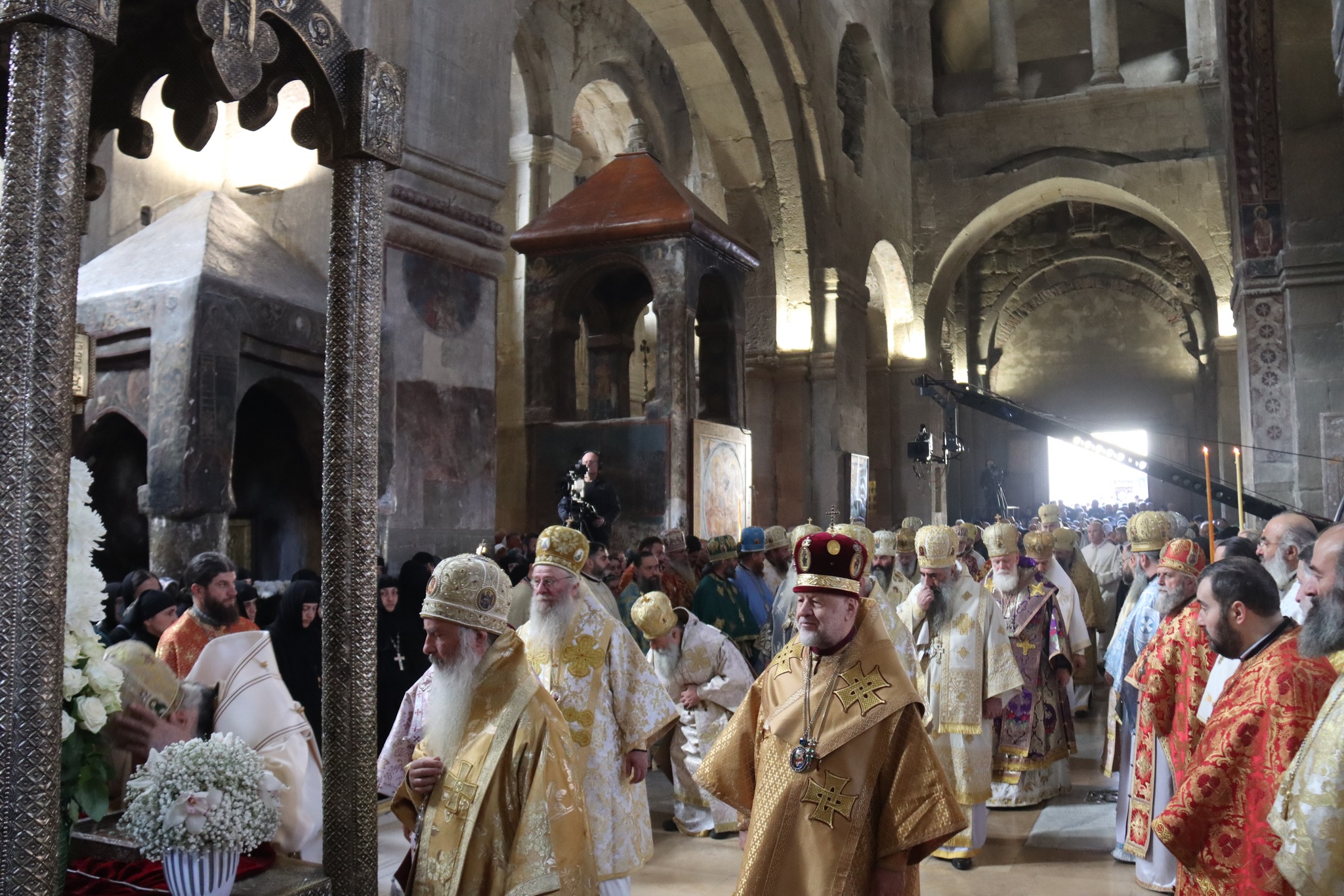 Божественну літургію в кафедральному соборі Светицховелі – головній християнській святині країни, де, за переказами, зберігається Хітон Господній і Животворящий Стовп, – очолив Патріарший місцеблюститель митрополит Шио (Муджирі) у співслужінні духовенства.