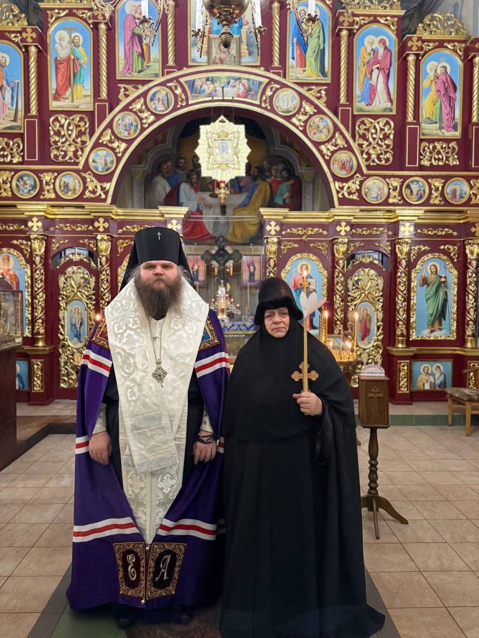Після богослужіння архієрей звернувся до новопостриженої монахині з архіпастирським словом, нагадавши про значення чернецтва як шляху смирення і послуху.