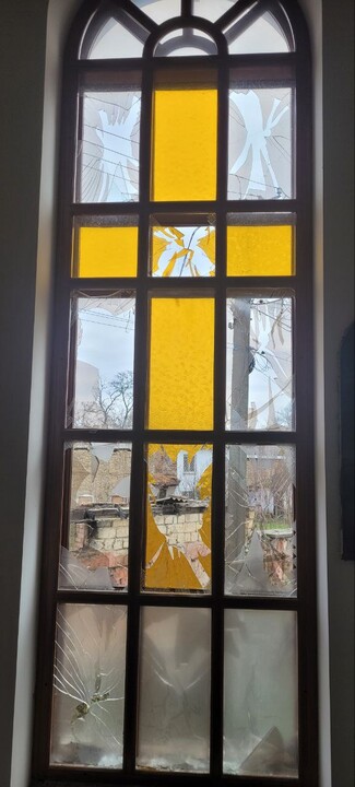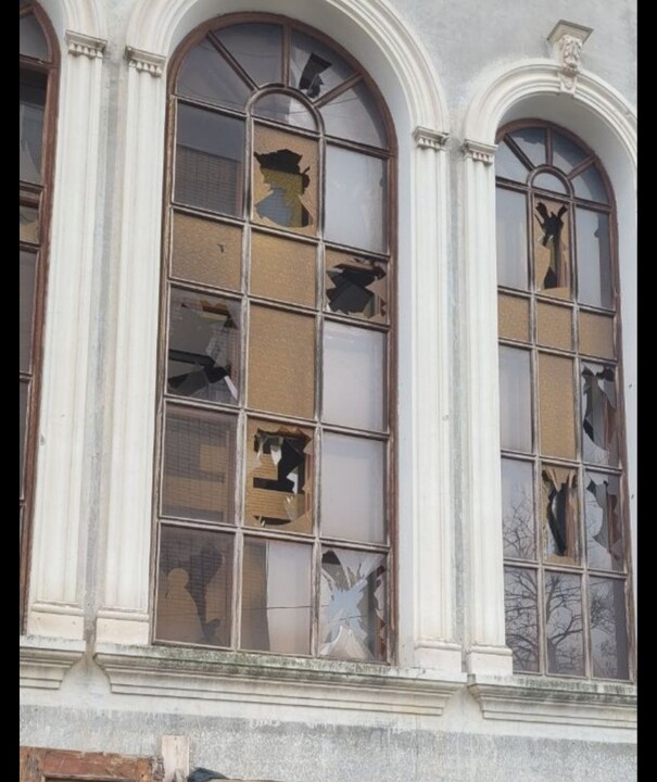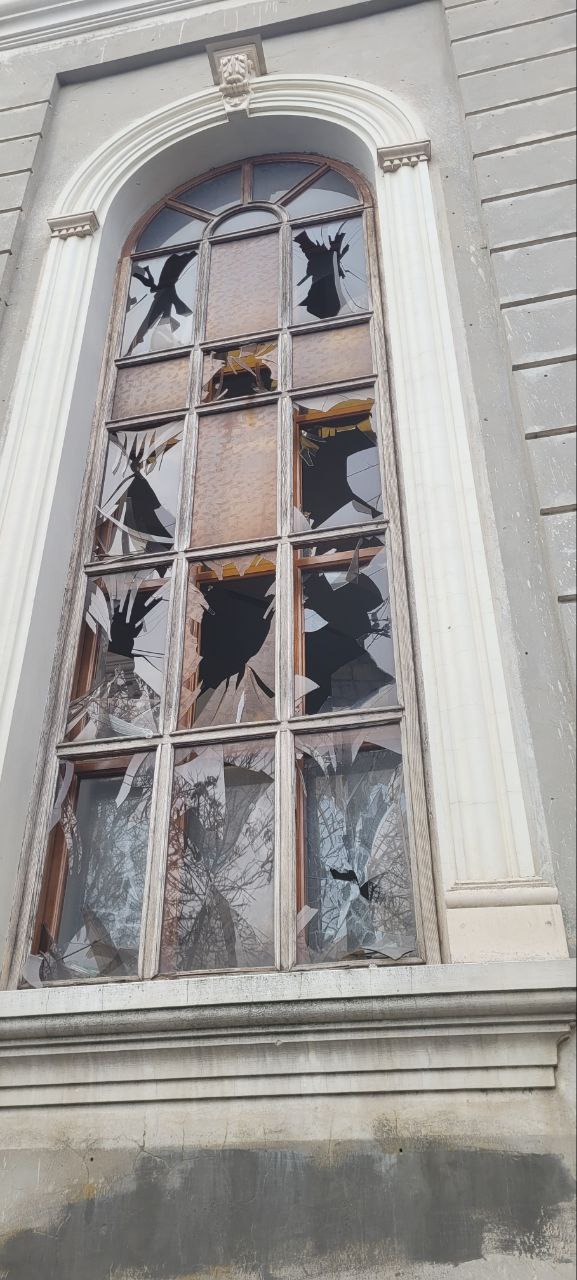 Зруйнована церковна огорожа, в церкві вибиті вікна, пошкоджені фасад храму та приміщення на території.