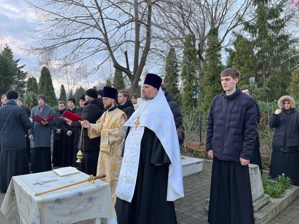 Захід розпочався з акафістного співу апостолу Андрію Первозванному, небесному покровителю семінарії, яке очолив єпископ Овідіопольський Анастасій. Потім ректор духовного навчального закладу протоієрей Дмитро Яковенко звершив панахиду за спочилими ректорами, викладачами та студентами на братському кладовищі Успенського монастиря.