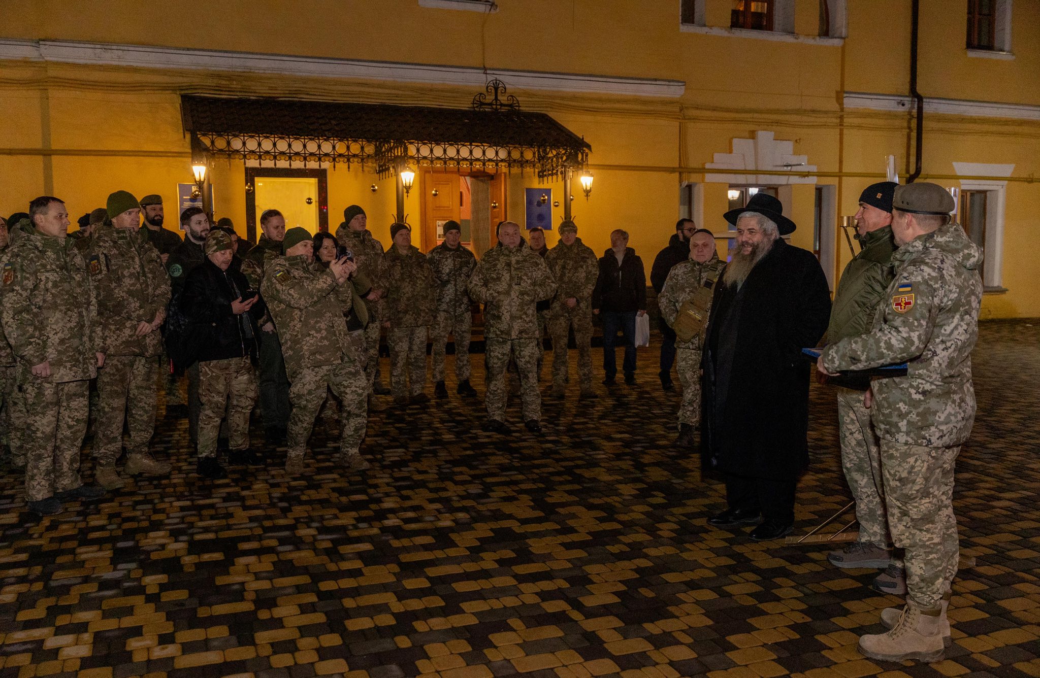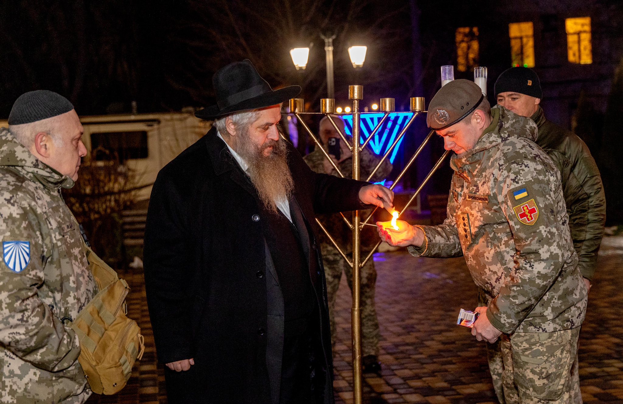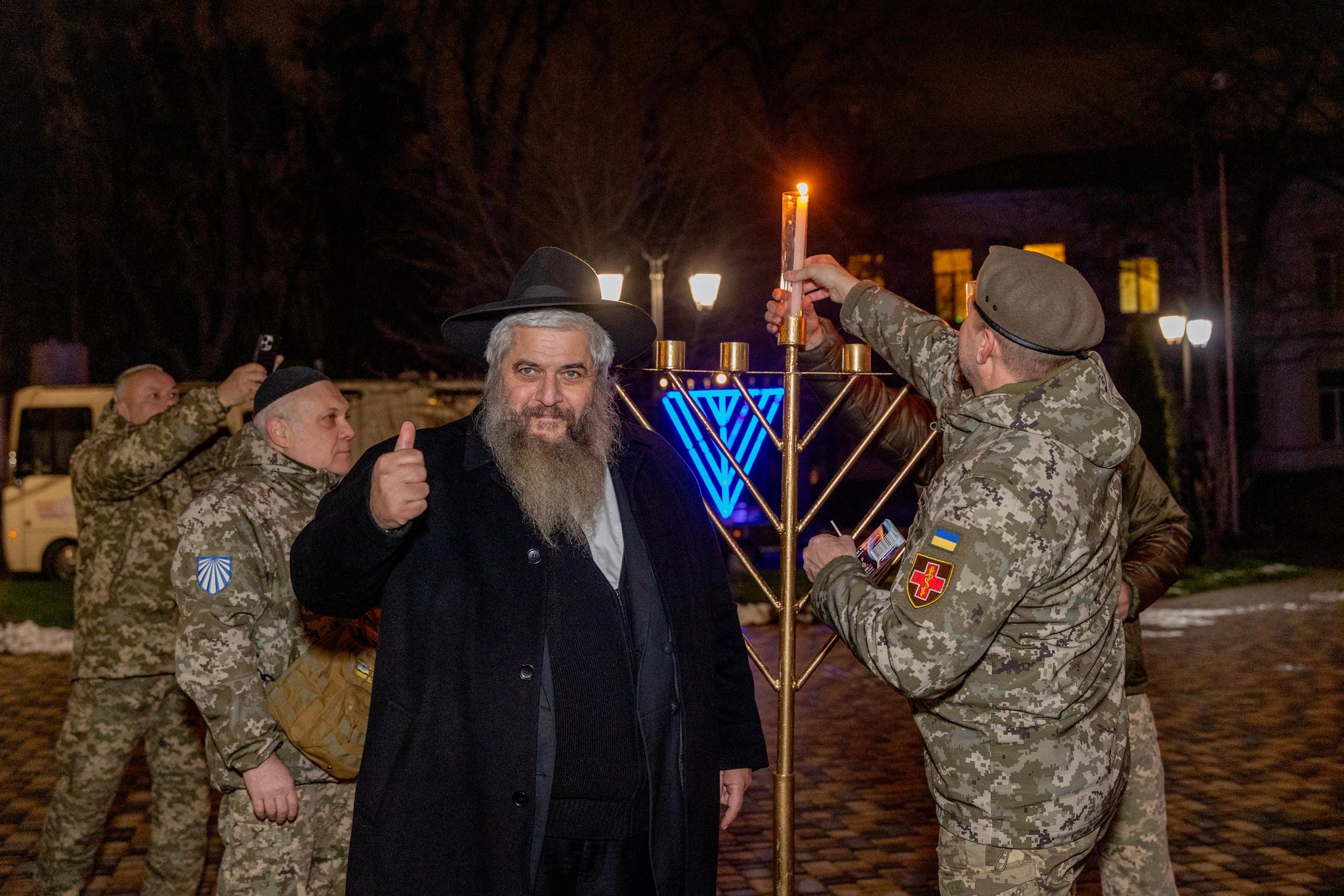 Церемонію запалювання провів настоятель Покровського храму і капелан ПЦУ Олег Скнарь. Як повідомив рабин, цей захід проходить на території госпіталю вже третій рік поспіль. «Це стало вже чимось на зразок традиції, це символ підтримки тв вдячності всім тим, хто захищає Україну ціною свого здоров'я!», – повідомив Асман.
