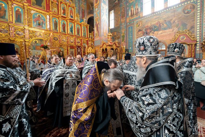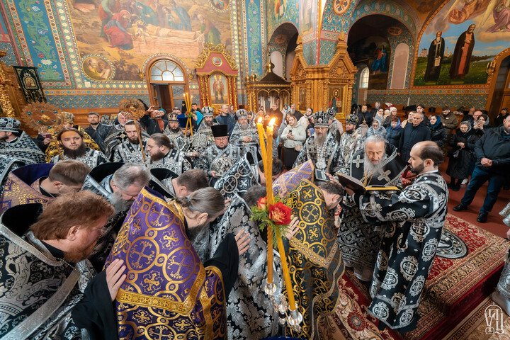 Богослужіння відбулося в головному соборі обителі. Предстоятелю співслужили керуючий справами УПЦ митрополит Бориспільський і Броварський Антоній, ієрархи та духовенство Київської єпархії. Піснеспіви виконав хор Київських духовних шкіл.